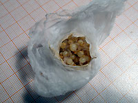 Ca. 7 Wochen später am 5.12.2004 habe ich ihr den Kokon weggenommen und ihn geöffnet. Zu diesem Zeitpunkt befanden sich noch Prälarven in dem Kokon.