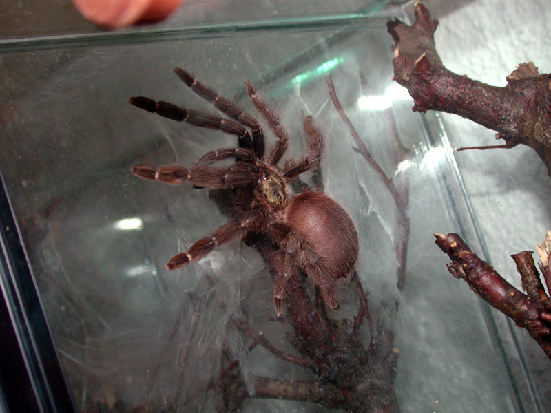 Der Boden wird einmal die Woche leicht gegossen, außerdem lasse ich immer ein wenig Wasser auf das Gespinst kommen. Ansonsten halte ich die Tiere eher trocken. Auch hiermit gab es bis jetzt keine Probleme.